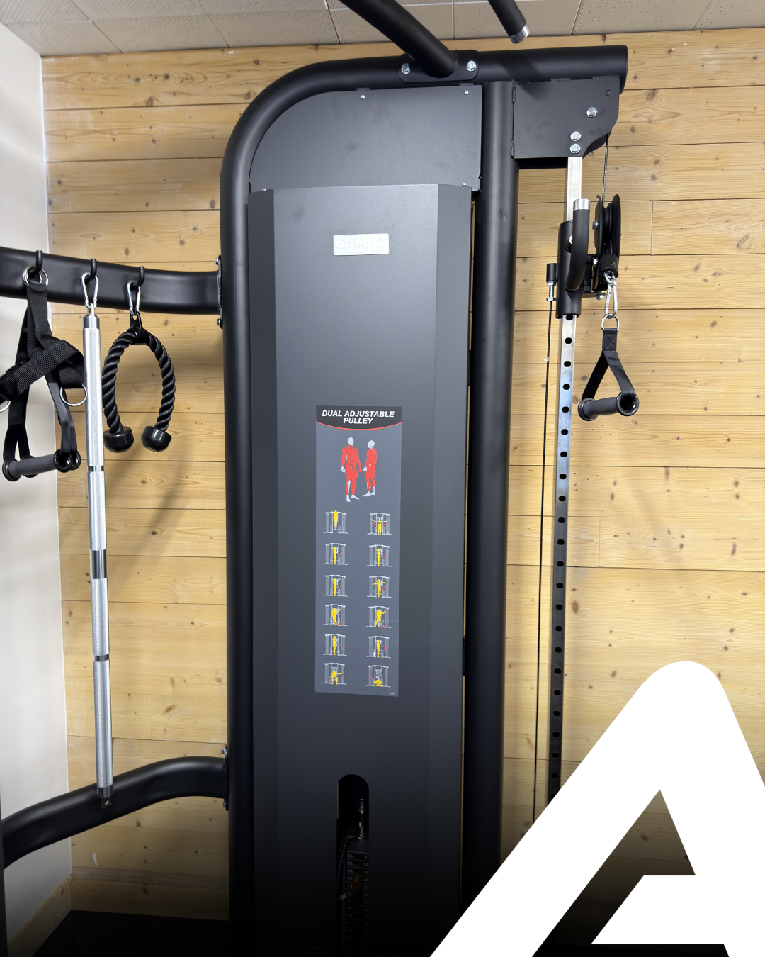 • 1 poulie vis-à-vis : polyvalence totale sur plus de 50 exercices (pec deck câble, tirage poitrine, crossover, curl biceps).