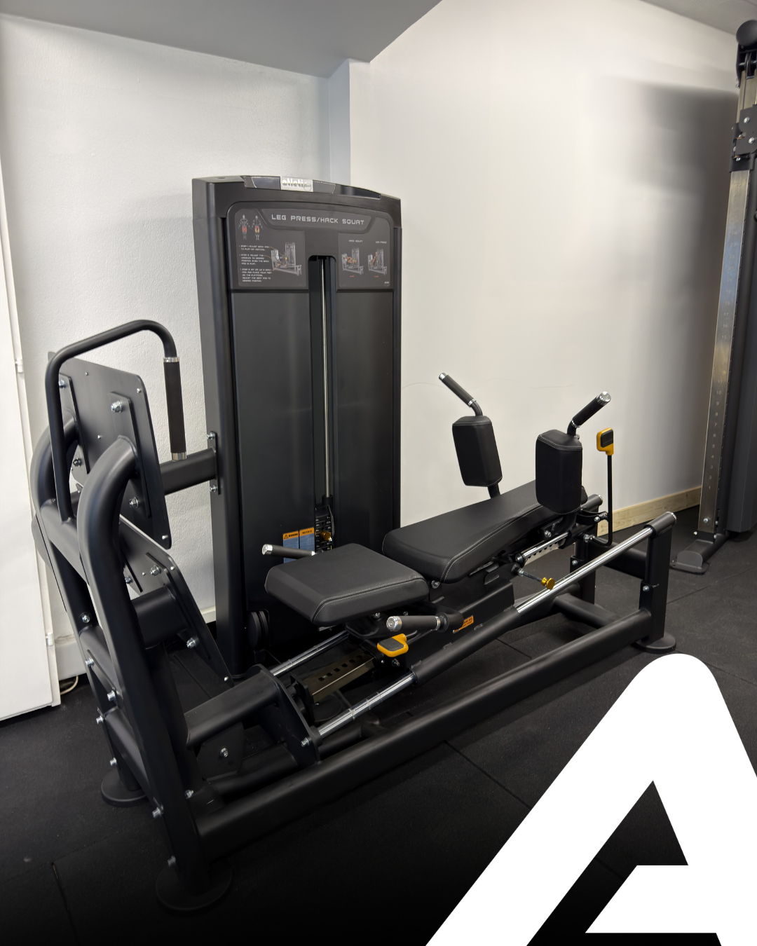 • Leg Press / Hack Squat RE-FIT+ : une double fonction 2-en-1 qui permet de travailler les membres inférieurs en presse inclinée ou en hack squat sans changer de poste. Gain d’espace au sol et polyvalence maximale.