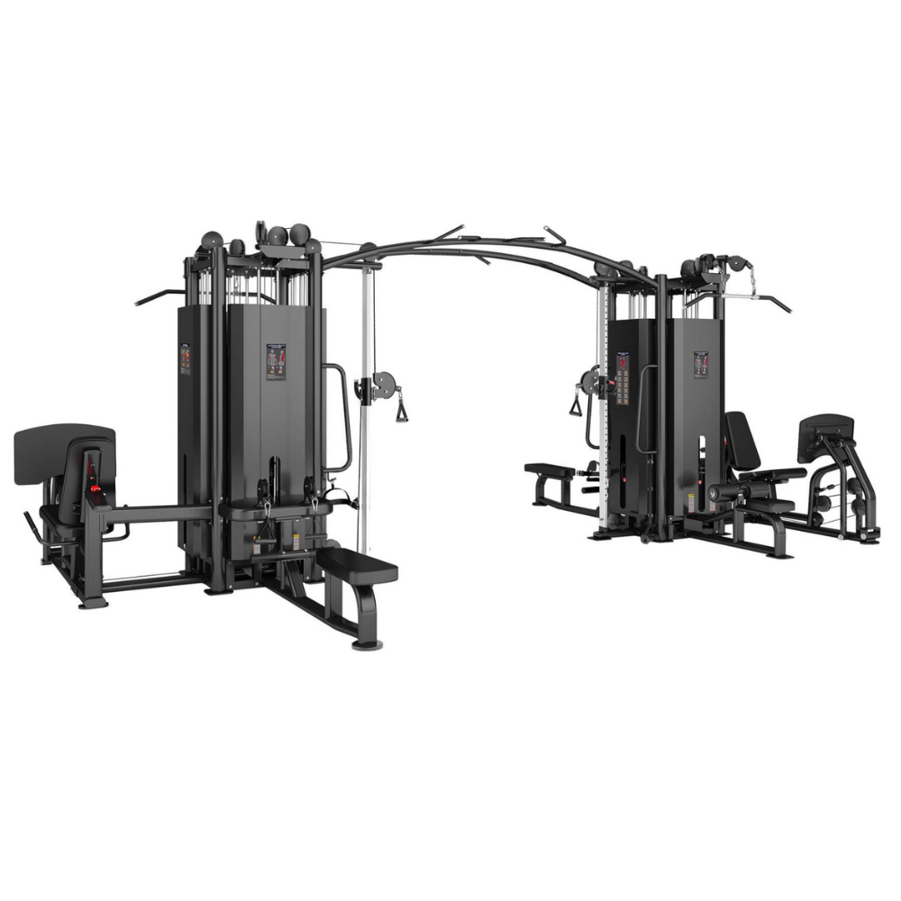Le modèle 8 STACK MULTI-STATION d’Atletisport est la combinaison parfaite d’efficacité, de diversité et de confort pour tout environnement d’entraînement. Avec sa conception experte, cet équipement combine deux tirages poulie basse, deux tirages poulie haute, un vis-à-vis avec deux poulies réglables en hauteur et deux presses horizontales à cuisses, le tout dans une structure robuste et compacte.