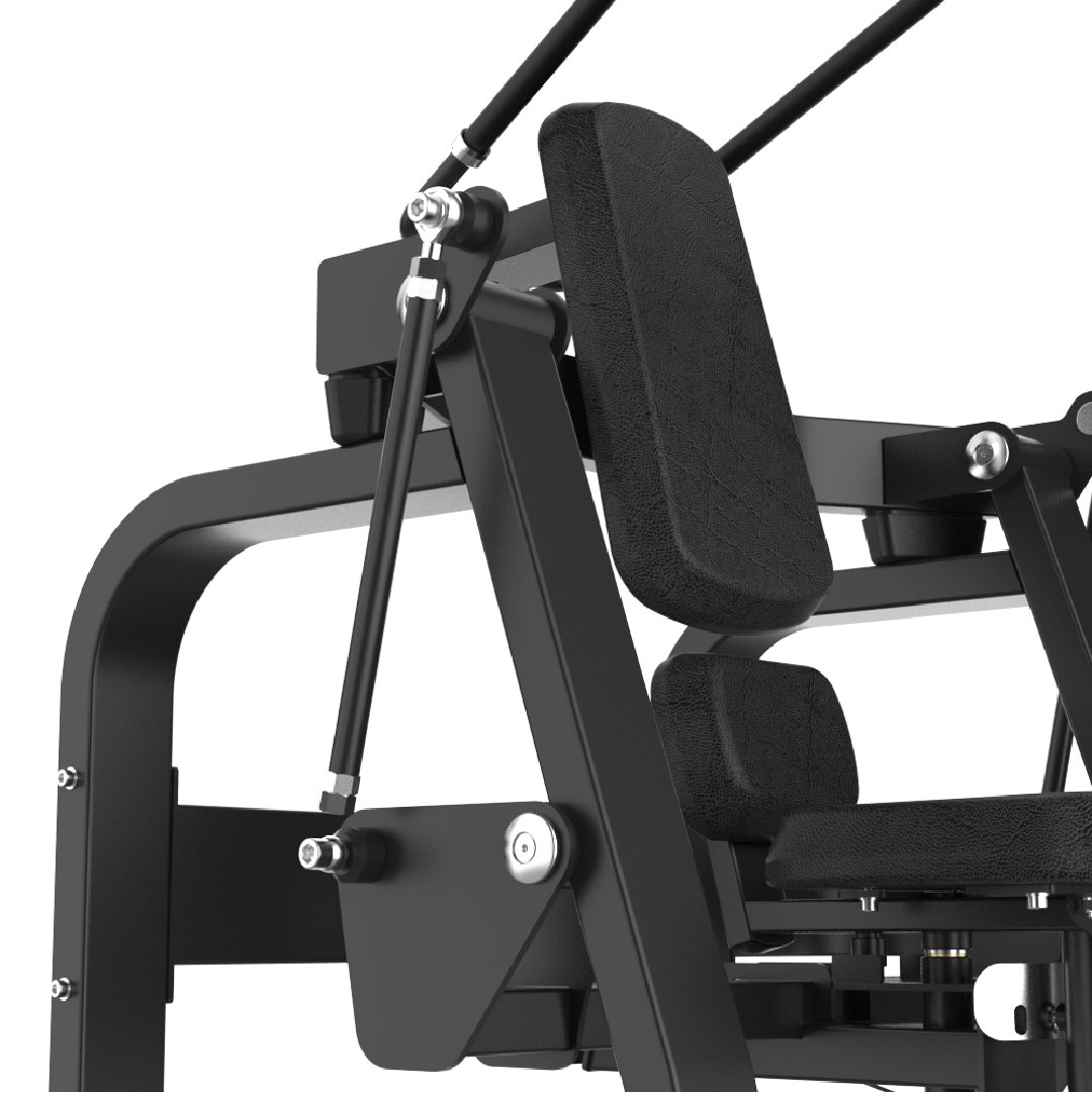 Structure à liaison naturelle : la trajectoire de crunch biomécanique redéfinie La structure à liaison naturelle est l’innovation mécanique centrale et la plus différenciante du AXIS 027. Ce mécanisme d’articulation soigneusement conçu, clairement visible sur la photo de détail, relie les poignées et le coussin thoracique via un double système de câbles et d’axes de rotation chromés, reproduisant fidèlement la trajectoire naturelle de la flexion du rachis lombaire lors d’un crunch abdominal. Contrairement aux machines à crunch classiques dont le bras de mouvement impose une trajectoire circulaire rigide et fixe qui ne respecte pas les axes biomécaniques naturels de la colonne vertébrale, la structure à liaison naturelle du AXIS 027 permet au coussin thoracique de suivre la courbe naturelle de la flexion du tronc de chaque utilisateur, s’adaptant à la morphologie du rachis plutôt que de contraindre le rachis à une trajectoire mécanique imposée. Cette adaptation biomécanique dynamique maximise le recrutement des muscles abdominaux sur toute l’amplitude de flexion, réduit significativement les contraintes mécaniques sur les vertèbres lombaires et les disques intervertébraux, et génère une sensation de mouvement naturelle, fluide et engageante qui favorise une exécution technique irréprochable et une progression optimale.
