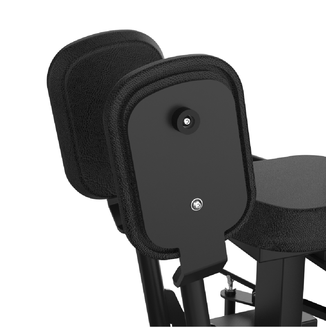 En mode abduction, les coussins de cuisse se déplacent de l’intérieur vers l’extérieur, sollicitant les muscles abducteurs de la hanche – moyen fessier, petit fessier et tenseur du fascia lata – dans un mouvement d’écartement des cuisses. Ce travail est fondamental pour développer la rondeur, la fermeté et la puissance de la face externe des fessiers et des hanches, améliorer la stabilité du bassin dans le plan frontal et prévenir les blessures du genou liées à une faiblesse des abducteurs.