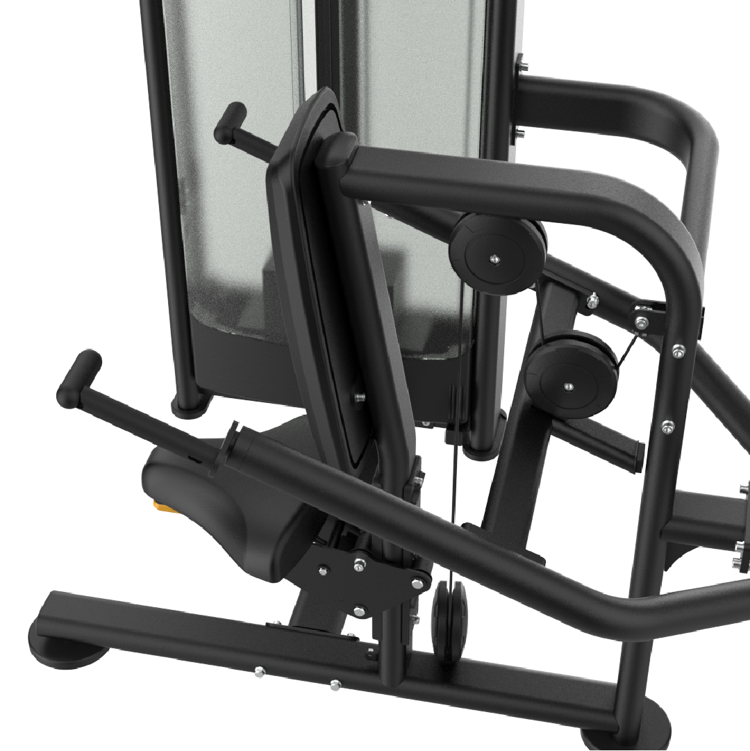 L’appareil dispose d’un siège réglable, de poignées ergonomiques et d’un dossier stabilisant, permettant à l’utilisateur de s’installer confortablement et de maintenir un alignement idéal du torse, même sous charge importante. La structure robuste en acier renforcé, associée à un système de guidage haute précision, garantit une utilisation fluide et fiable, adaptée à un usage intensif.