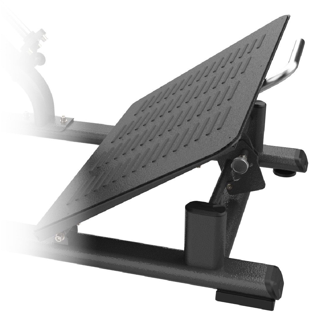 Plateforme antidérapante multi-positions : une liberté de positionnement des pieds complète La plateforme antidérapante multi-positions du IMPACT 036 est l’innovation ergonomique la plus visible de la machine. Cette grande plateforme inclinée à rainures denses en diagonale, traitée dans la même finition hammertone gris anthracite que la structure, est réglable en angle et en position selon plusieurs configurations distinctes, permettant d’adapter l’inclinaison et la position de la plateforme aux préférences biomécaniques et morphologiques de chaque utilisateur. La poignée chromée latérale intégrée facilite la manipulation et l’installation de la plateforme en position optimale. La surface à rainures denses en diagonale, caractéristique du design IMPACT, offre une adhérence omnidirectionnelle maximale quelle que soit l’orientation et la position des pieds, éliminant tout risque de glissement même lors des charges les plus importantes et des amplitudes de squat les plus profondes. La multi-positionnalité de la plateforme permet de varier précisément le positionnement des pieds – écartement, hauteur et orientation des orteils – pour cibler différemment les quadriceps, les fessiers et les ischio-jambiers selon les objectifs de chaque séance.