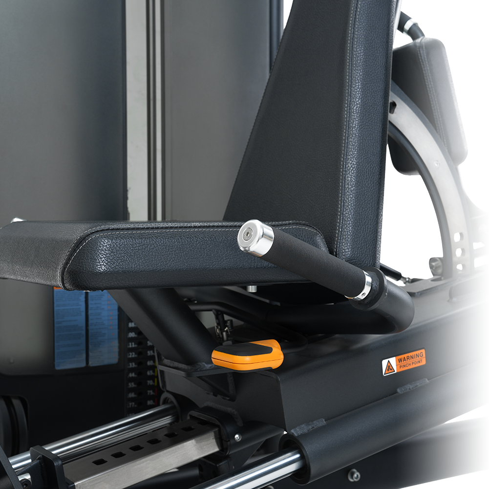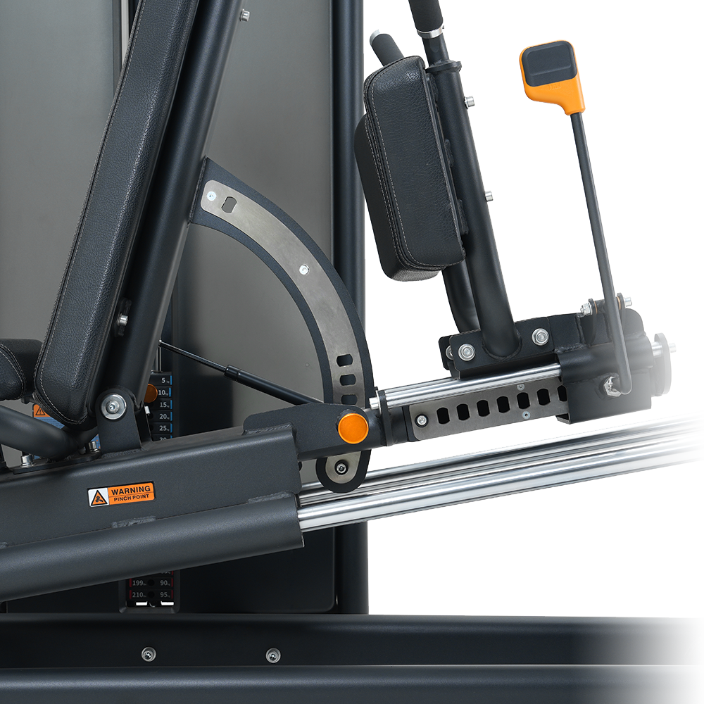 Le Leg Press / Hack Squat RE-FIT+16 B combine deux exercices en un seul appareil : presse à jambes et hack squat. Grâce à ses réglages multiples, il s’adapte à tous les utilisateurs et permet un travail complet et sécurisé des jambes. Sa structure robuste et son mouvement fluide en font un choix idéal pour les salles de sport professionnelles.