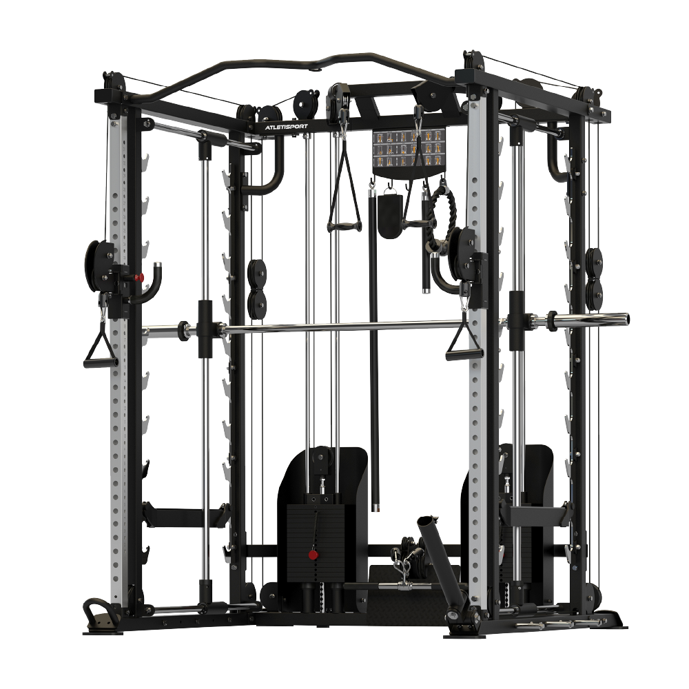 La Multistation A-SP9B Atletisport combine puissance, sécurité et fluidité pour un entraînement complet du corps avec rack, poulies et poste guidé intégrés.